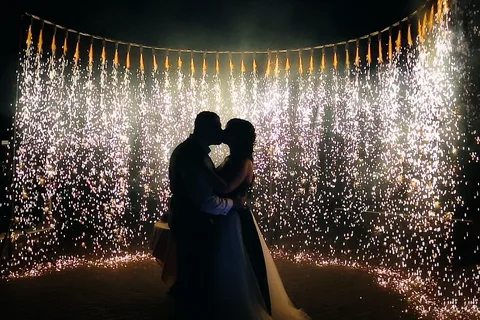 - Первый свадебный танец: Под сверкающим дождем искр ваш первый танец станет незабываемым.